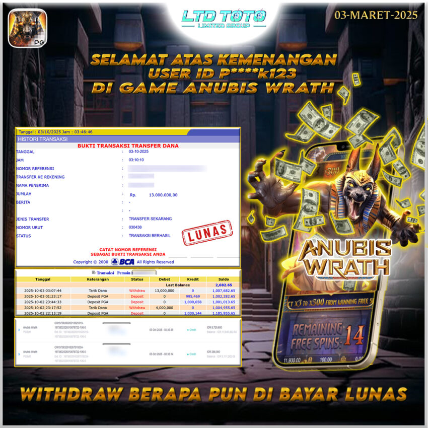 LTDTOTO JACKPOT ANUBIS WRATH RP 13.000.000 DI BAYAR LUNAS!