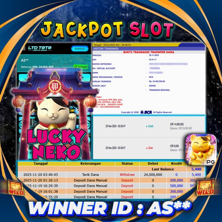 LTDTOTO JACKPOT LUCKY NEKO RP 24.000.000 DI BAYAR LUNAS!
