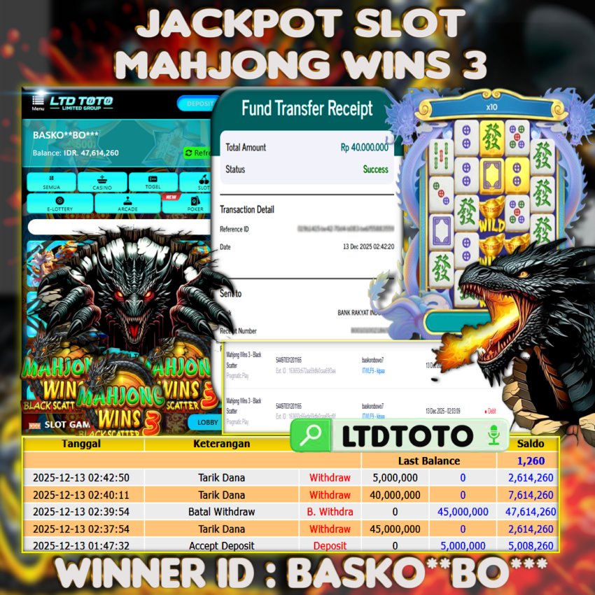 LTDTOTO JACKPOT MAHJONG WINS 3 – BLACK SCATTER RP 40.000.000 SABTU 13 DESEMBER 2025
