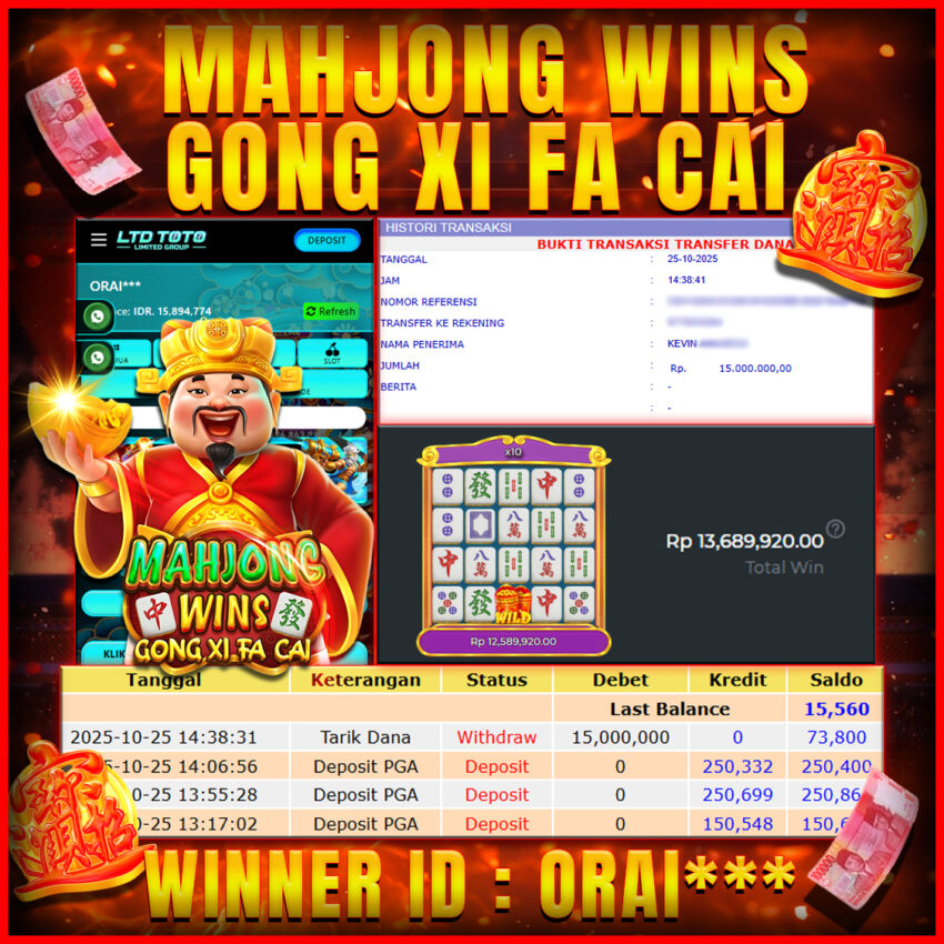 LTDTOTO JACKPOT MAHJONG WINS GONG XI FA CAI RP 15.000.000 SABTU 25 OKTOBER 2025