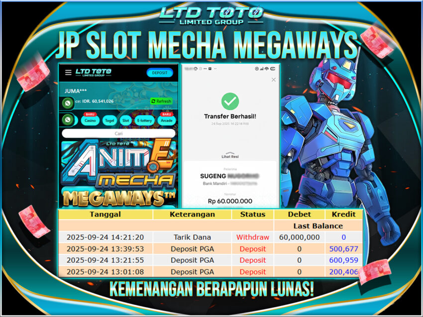 LTDTOTO JACKPOT SLOT ANIME MECHA MEGAWAYS RP 70.000.000 DI BAYAR LUNAS!