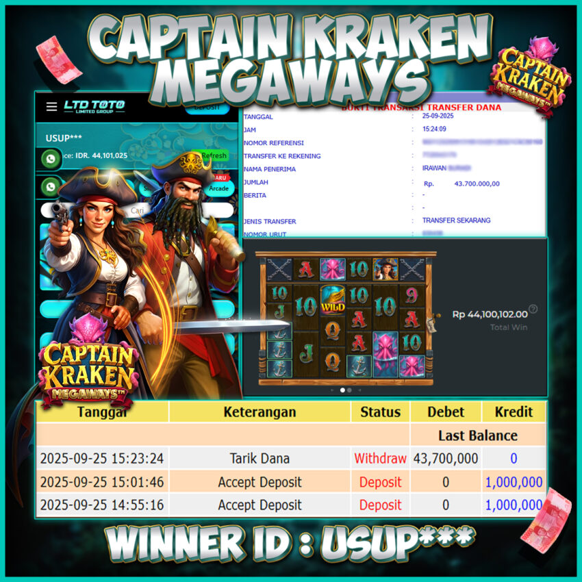 LTDTOTO JACKPOT SLOT CAPTAIN KRAKEN MEGAWAYS RP 43.700.000 KAMIS 25 SEPTEMBER 2025