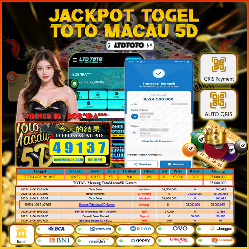 LTDTOTO JACKPOT TOGEL TOTOMACAU 5D RP 24.500.000 JUM’AT 07 NOVEMBER 2025
